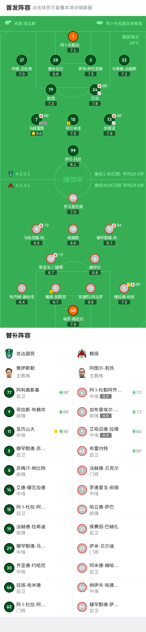第83分钟,贝加送出助攻,马赫雷斯禁区内推射破门!吉达国民2-0