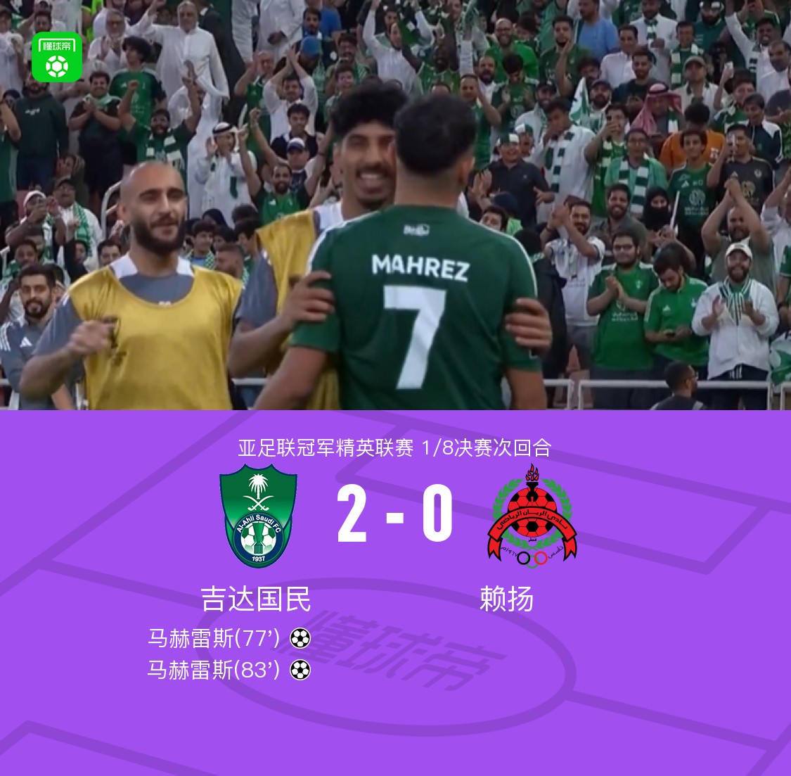 吉达国民2-0赖扬,总分5-1晋级八强,马赫雷斯梅开二度