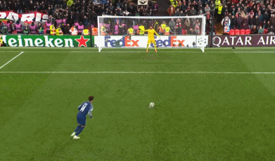 点球大战第一轮:维蒂尼亚、萨拉赫均稳稳命中