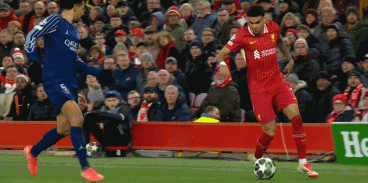 第82分钟,利物浦长传发动进攻,努涅斯与路易斯-迪亚斯出现不默契