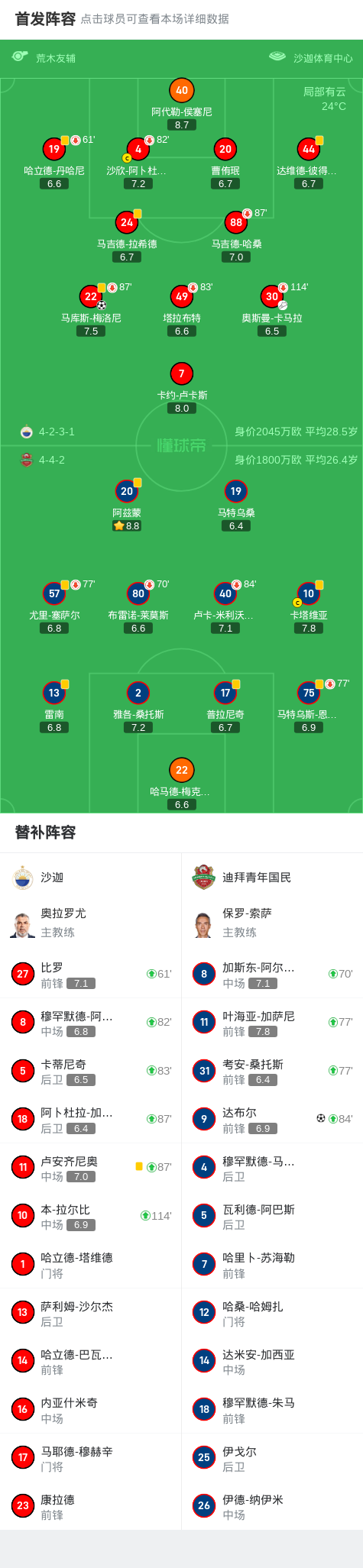 第35分钟,沙迦球员奥斯曼-卡马拉助攻马库斯-梅洛尼打入一球。