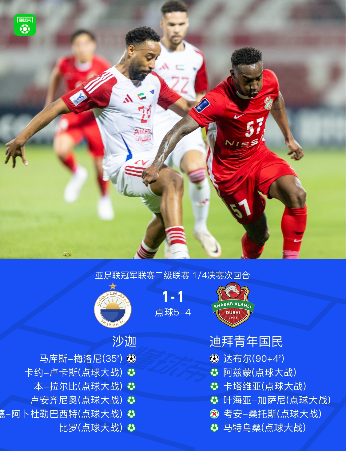 点球大战,沙迦总比分7-6战胜迪拜青年国民成功晋级