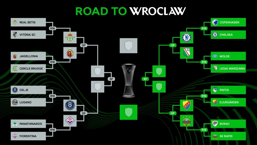 欧协联八强对阵:贝蒂斯vs雅盖隆,切尔西vs华沙莱吉亚