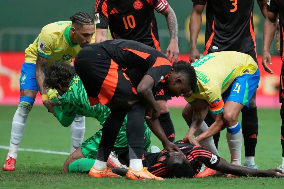 Alisson jumped to punch the ball clear before colliding with former Tottenham star Davinson Sanchez, who was featuring for Colombia.