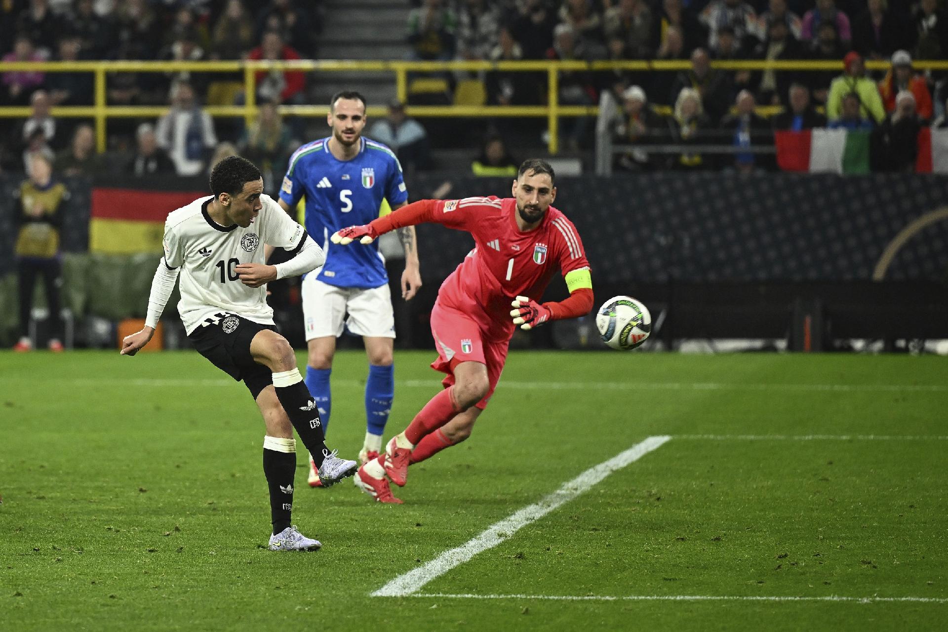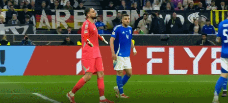 就在这个进球发生之前,意大利门将多纳鲁马刚刚扑出了一次对方的射门,在这之后他还向自己身前的防线表达了不满。