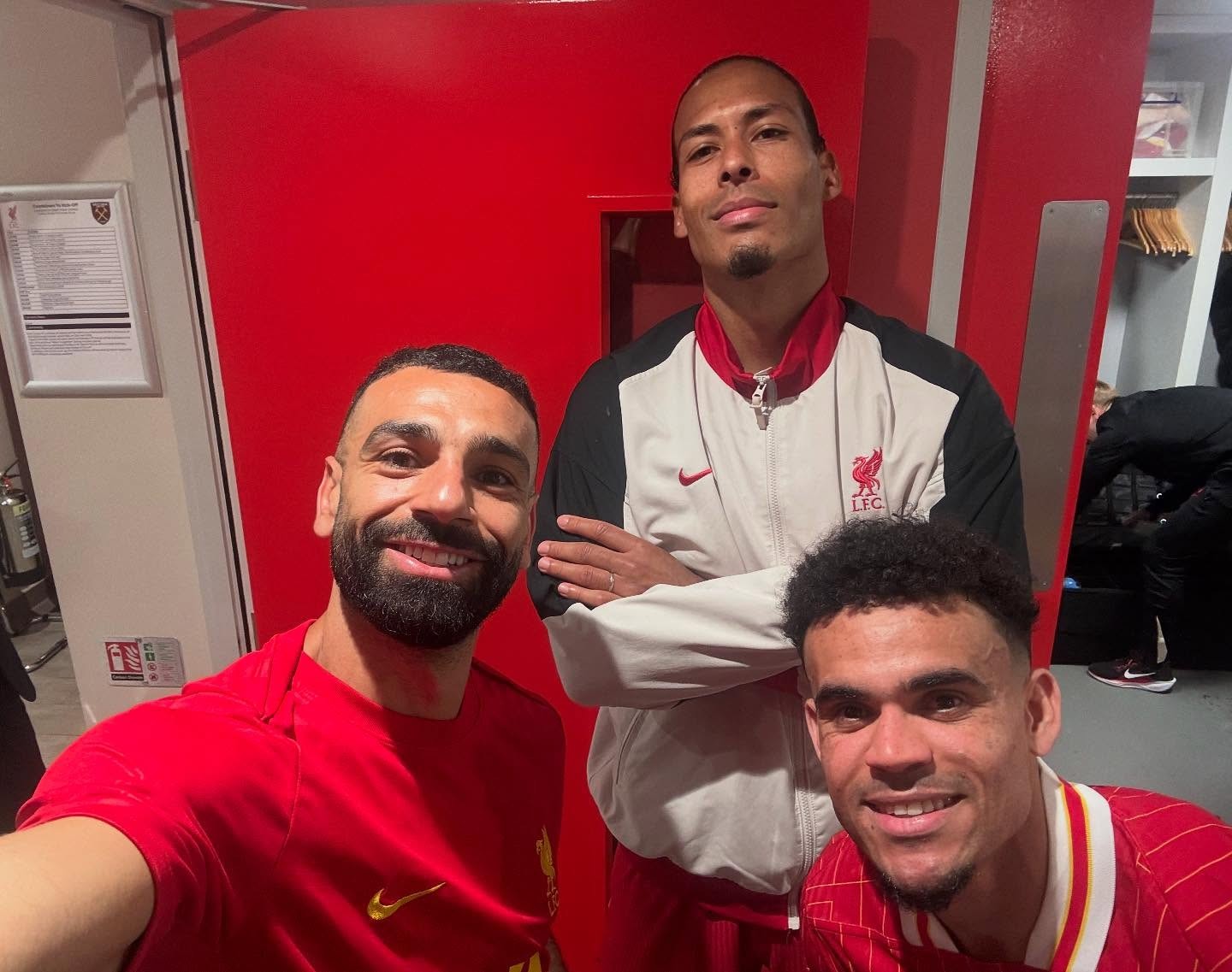 赛后,萨拉赫按照惯例晒出他和进球功臣的自拍合照,今天与他合影的队友是范戴克和路易斯-迪亚斯。