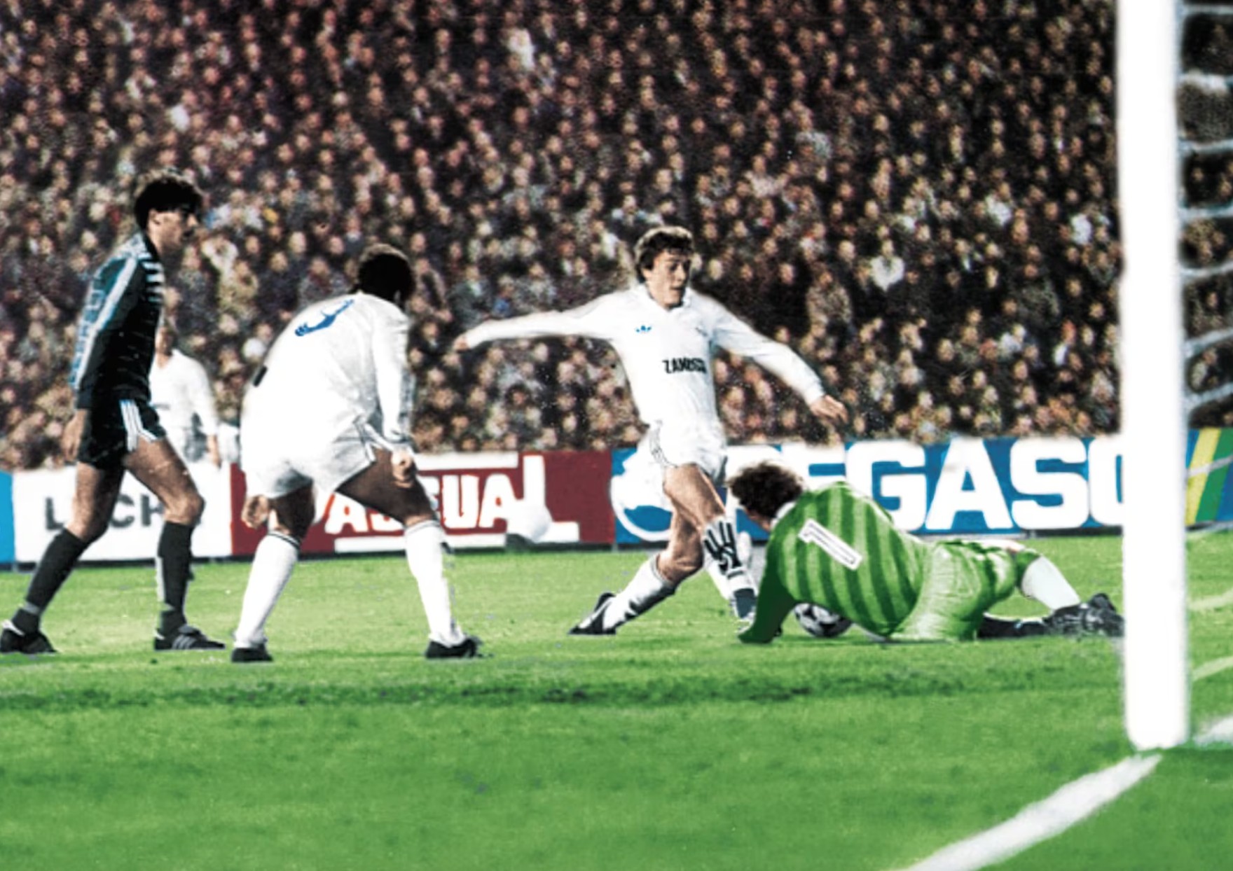 英格兰冠军德比郡首回合4-1横扫皇马。但1975年11月5日,伯纳乌化身沸腾的火山。罗伯托-马丁内斯扛起球队,皮里点射,比分来到4-1,总比分被扳平双方进入加时。桑蒂拉纳在加时赛中打入关键进球,皇马6-5完成逆转。这场比赛被铭记为皇马早期的欧战经典战役之一。