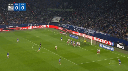 第15分钟,托比亚斯-莫尔任意球助攻,沙伦贝格破门,沙尔克1-0