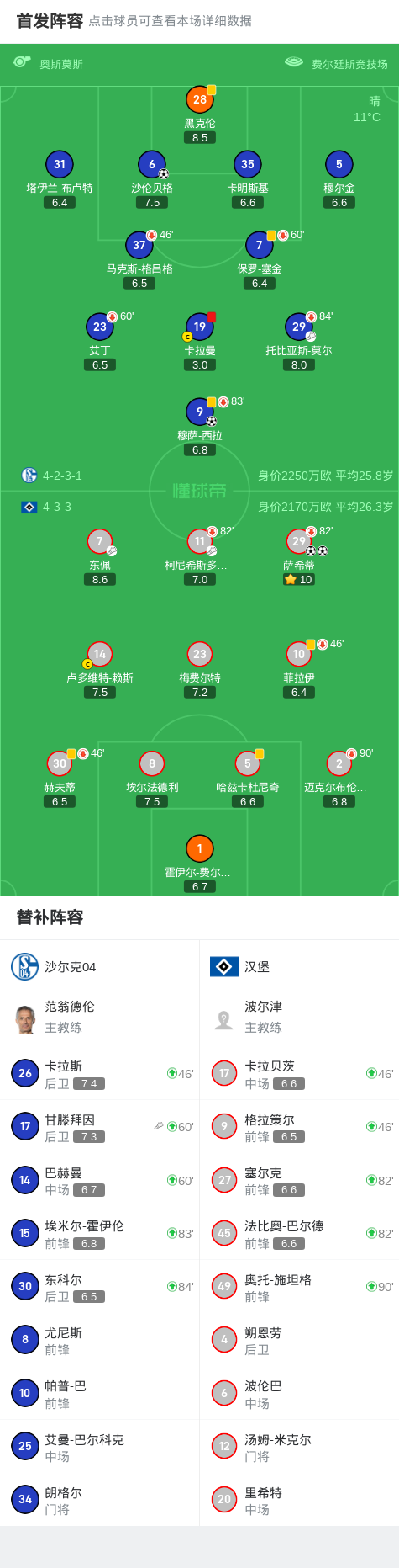 十人沙尔克2-2汉堡,萨希蒂双响,沙伦贝格、穆萨-西拉破门