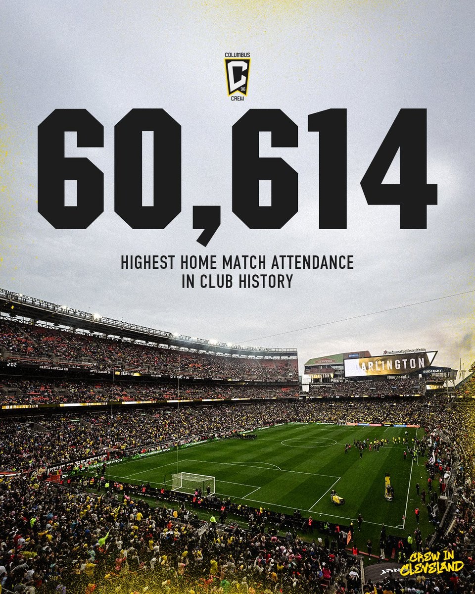 60614人,与迈阿密国际一役创哥伦布机员主场上座人数新高