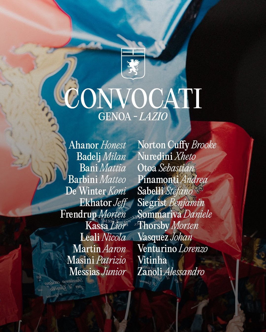 北京时间4月24日凌晨00:30,意甲联赛第33轮,热那亚将坐镇主场迎战拉齐奥。赛前热那亚公布了本场比赛的大名单,米雷蒂落选。