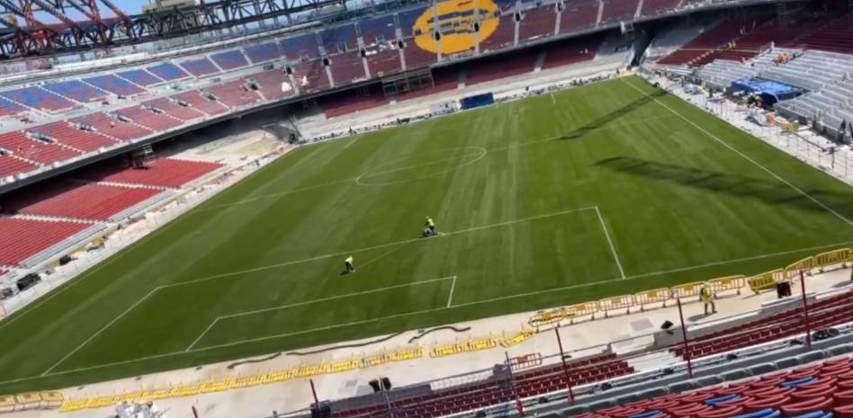 世体:诺坎普草坪已开始画线,巴萨目标九月重返该球场