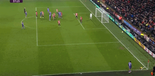 比赛第37分钟,利物浦获得角球机会,阿诺德开角球前裤子滑落,露出了一点臀部,随后阿诺德开出角球助攻无人盯防的范戴克推射破门。
