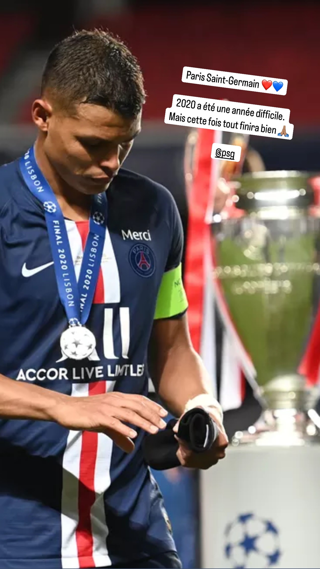 在巴黎第二次闯进欧冠决赛后,蒂亚戈-席尔瓦在社交媒体送上祝贺,写道:“巴黎圣日耳曼 ❤️💙