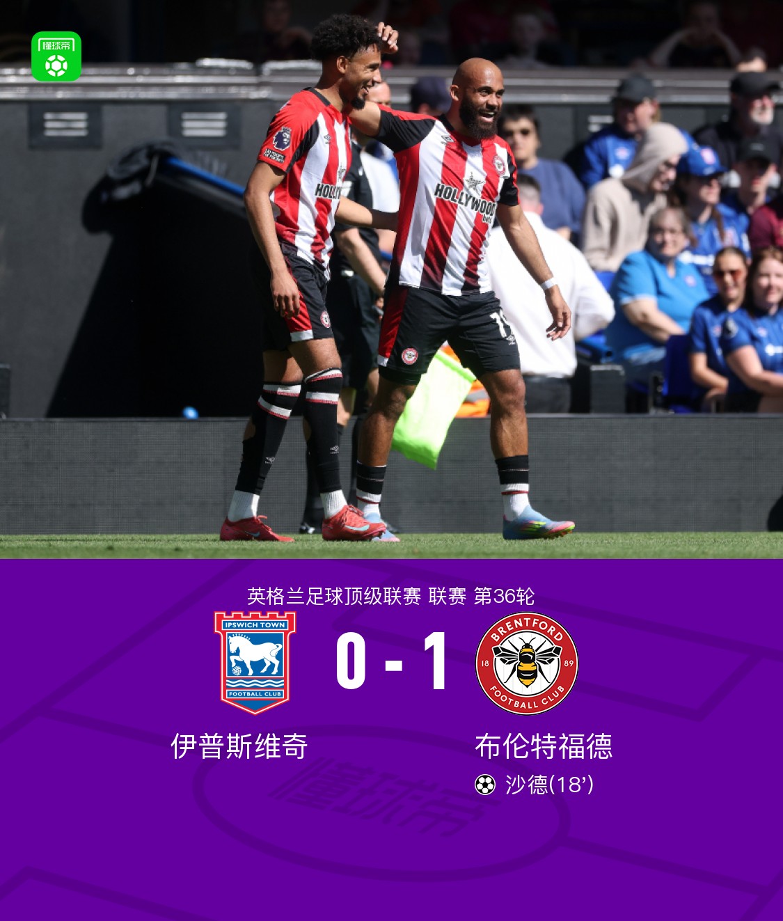 北京时间5月10日英超联赛第36轮,伊普斯维奇主场对阵布伦特福德。沙德头球破门打进全场唯一进球,赫斯特错失机会,维萨上演门线解围。最终布伦特福德1-0客胜伊普斯维奇,豪取英超四连胜。