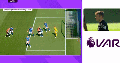 第17分钟,格里夫斯禁区内抱摔范登贝尔赫,主裁判经VAR确认没有吹点球