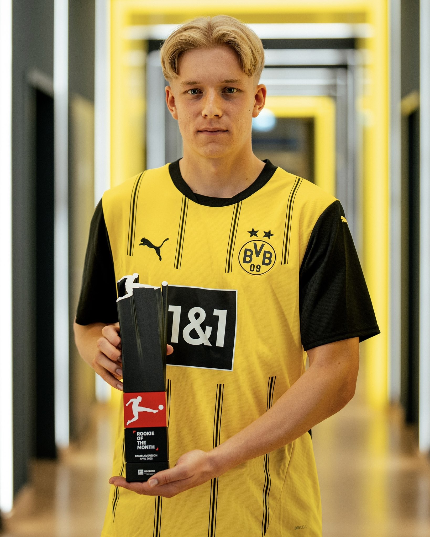 在4月的德甲联赛中,丹尼尔-斯文松代表多特蒙德首发出战了全部4场比赛,并且贡献1球2助攻,最终他被评为了德甲4月的最佳新人。