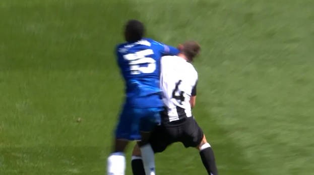 比赛第36分钟,雅克松在争抢球时用肘部击中了博特曼,主裁判约翰-布鲁克斯判给纽卡斯尔一个任意球,并向雅克松出示了一张黄牌。
