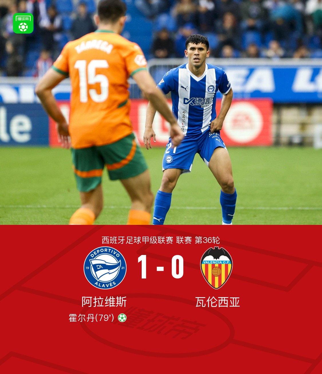 阿拉维斯1-0瓦伦西亚拿下保级关键三分,霍尔丹点射制胜