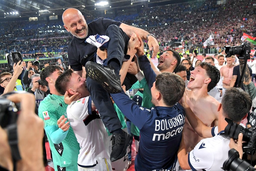 博洛尼亚主教练意大利诺率队时隔51年重夺意大利杯冠军,而他自己也实现了个人执教生涯冠军奖杯零的突破。