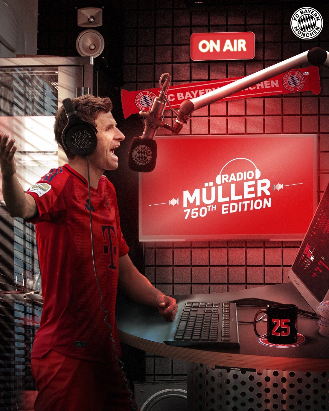 拜仁官方写道:“750x 穆勒电台正在广播 🔴📻