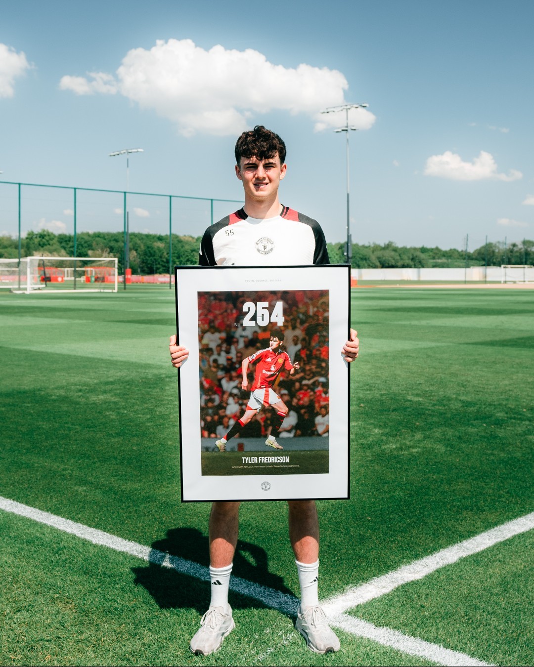 北京时间5月17日,曼联给队内的英格兰后卫泰勒-弗雷德里克森赠予了纪念相框,以此纪念其成为俱乐部青训第254位完成一线队首秀的球员。