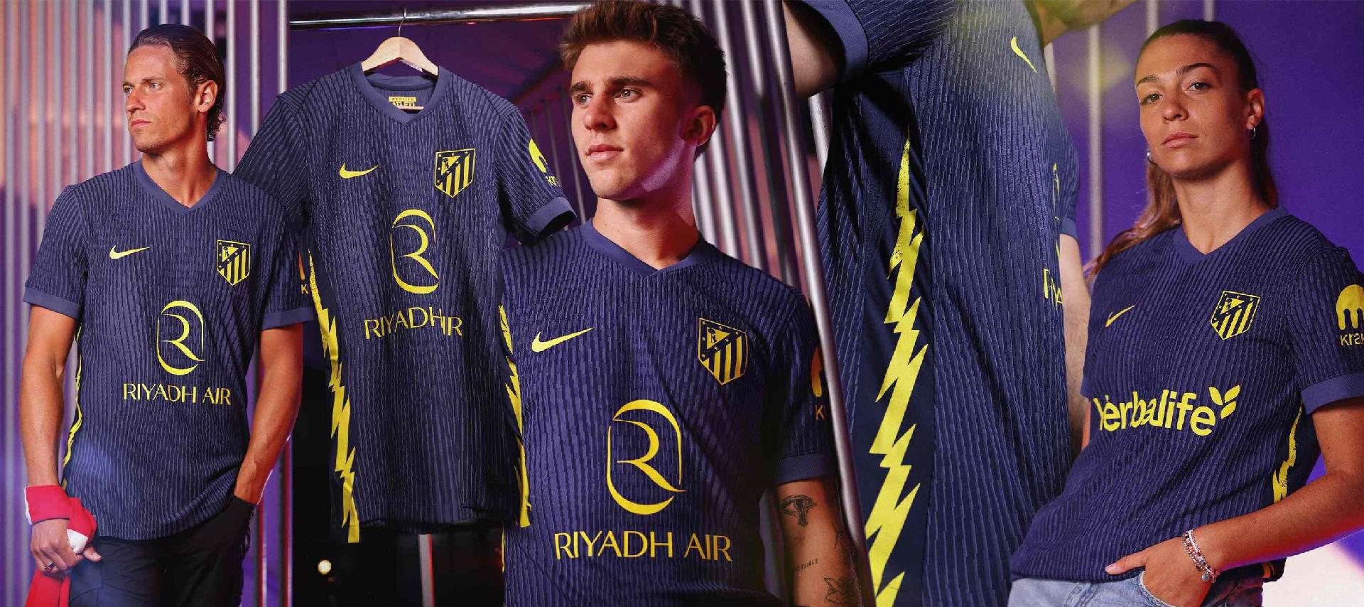 马竞发布新赛季客场球衣:海军蓝+电光黄,灵感来源AC/DC名曲