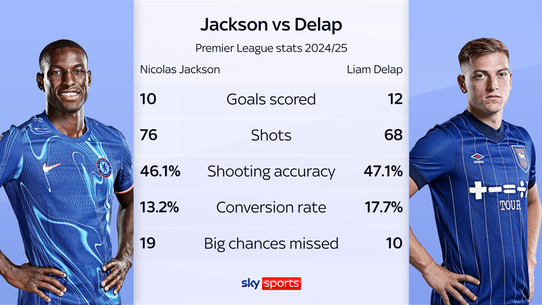 It is one of many metrics where Delap trumped Jackson last season, despite playing for a side ranked 15 places lower than Chelsea in the Premier League table.