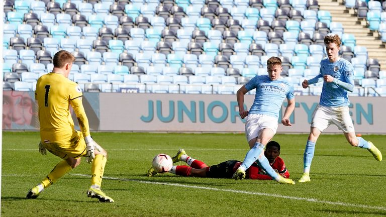 City's youth team would run out 3-0 winners. Cole Palmer scored twice - and was later sent off, but that's not really the point. The player who set up both his goals that day? Liam Delap.