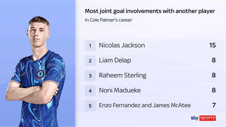 Palmer and Jackson have combined for a goal in seven different matches this season - and 15 overall since the latter moved to Stamford Bridge two years ago. The latest of those combinations came for the goal to put Chelsea ahead in the UEFA Conference League final.