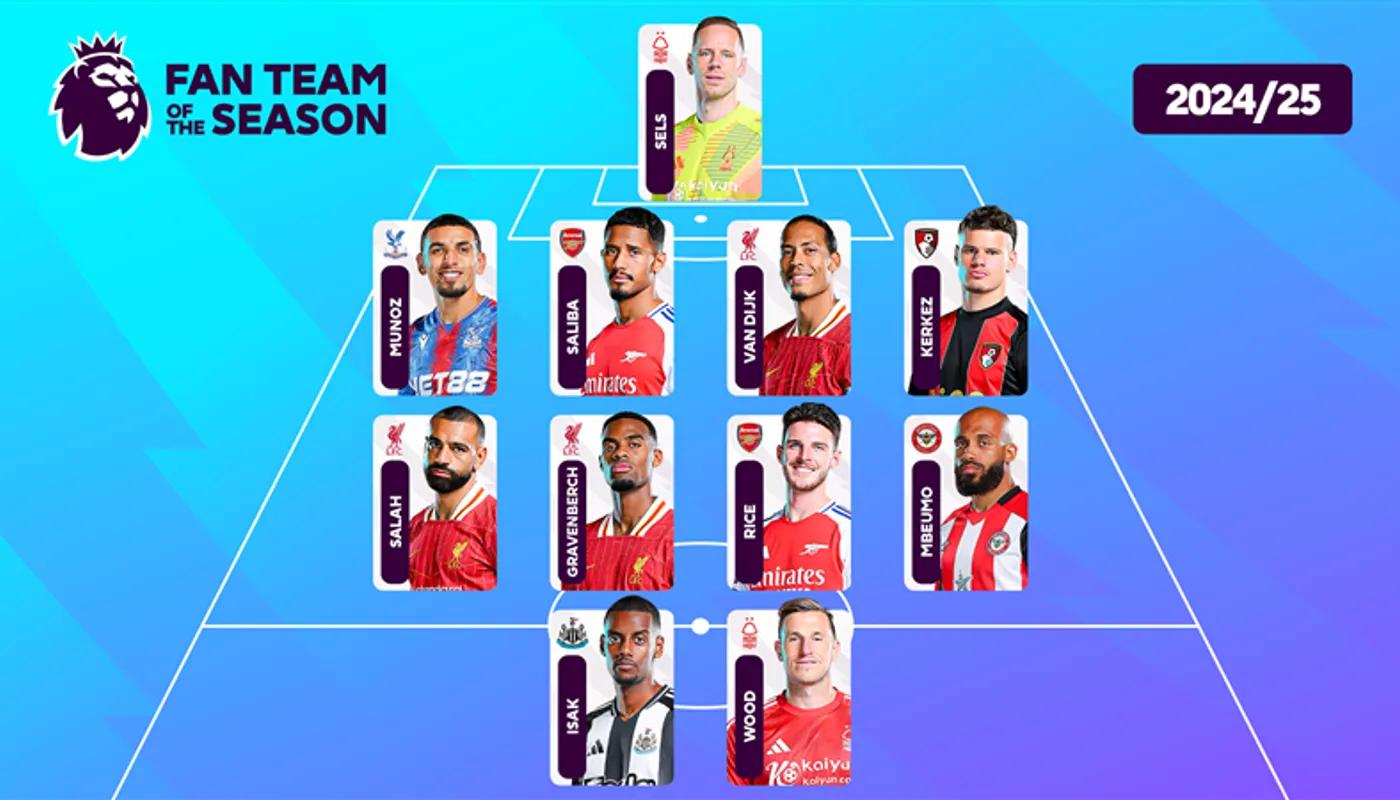 球迷票选本赛季英超最佳阵容:利物浦三人,枪手、森林各两人