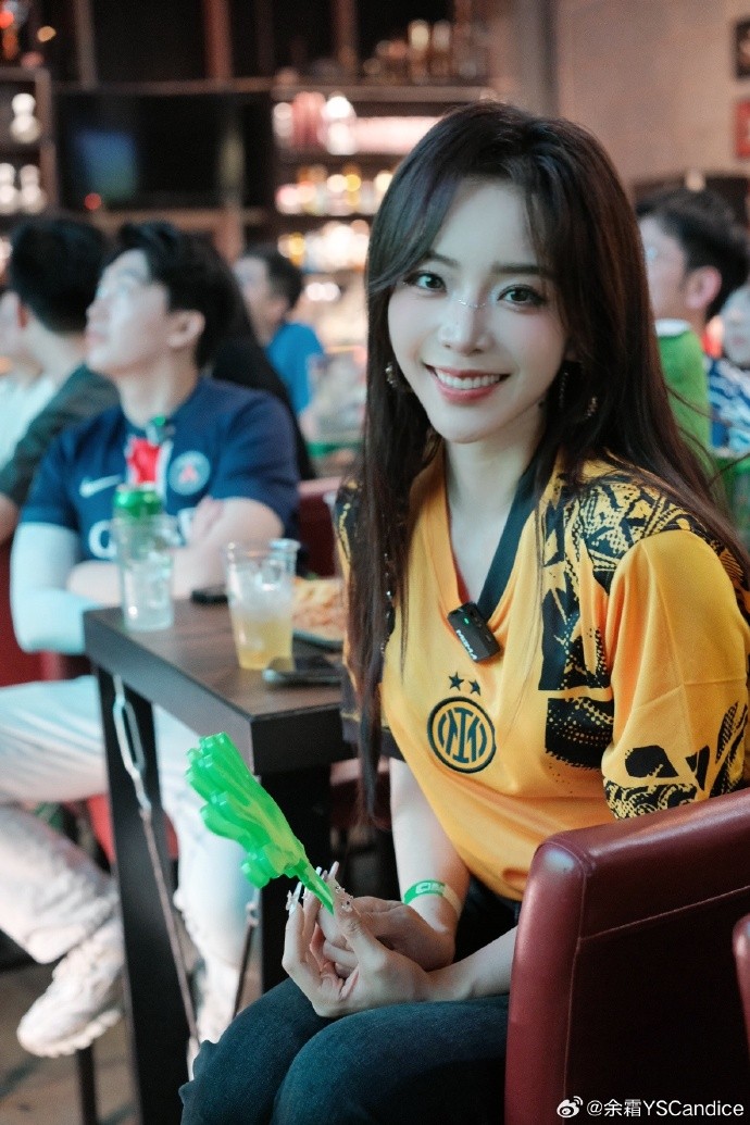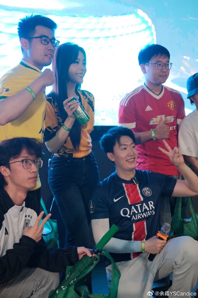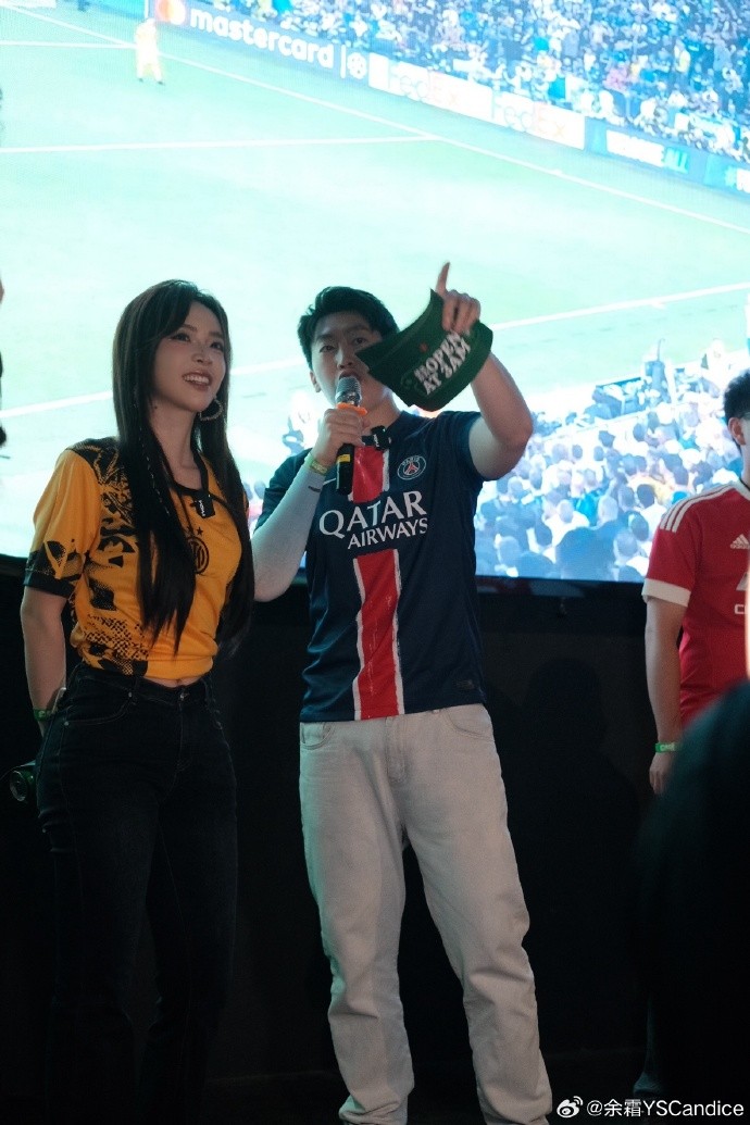 这场比赛,巴黎圣日耳曼5-0大胜国际米兰,赛后,余霜更新社交媒体写道:🍺和大家一起看球很开心!恭喜大巴黎!!💙