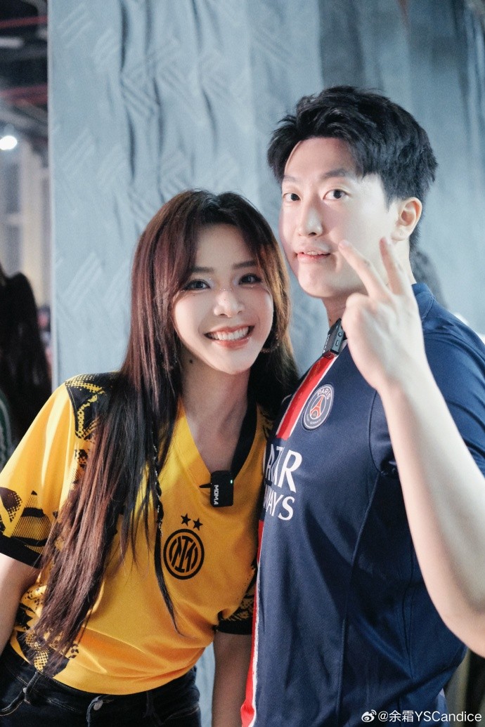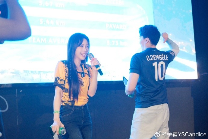 在现场,管泽元身穿的是巴黎圣日耳曼球衣,印着登贝莱的名字和号码,余霜则是身穿国际米兰的队服,两人在现场联袂主持,与球迷们热情互动。