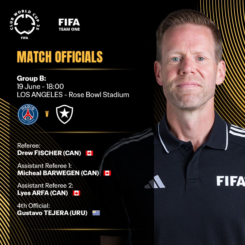 官方消息,加拿大裁判费希尔将执法世俱杯小组赛巴黎圣日耳曼vs博塔弗戈。