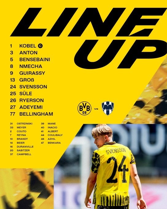 北京时间7月2日,世俱杯1/8决赛多特蒙德对战蒙特雷,赛前公布首发名单。