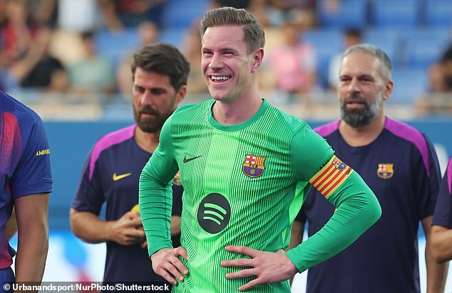 Laporta heaped praised on the German, saying: 'We're looking forward. Marc is our captain, I think he's been excellent. What was left has been resolved.