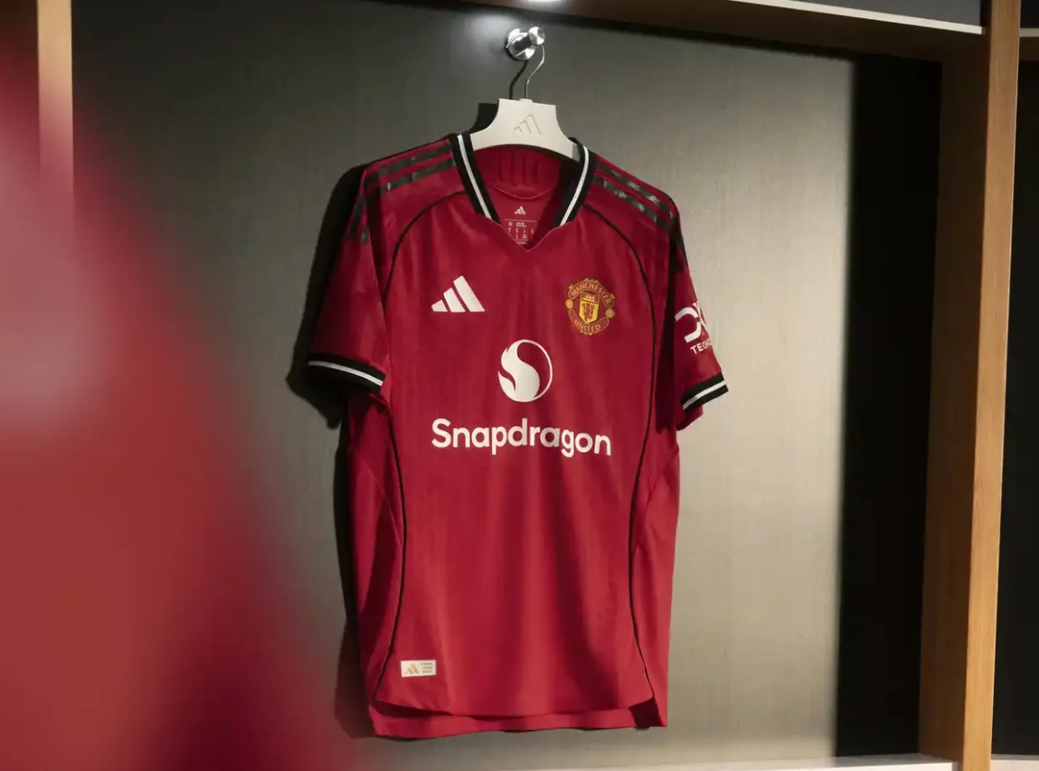 Manchester United's 2025/26 home kit arrives with a brilliant nod to their iconic home. Following the recent buzz around the proposed 100,000-seater ‘New Trafford’, this kit features a sleeve design directly inspired by the Theatre of Dreams itself. You'll spot the famous stadium roof subtly silhouetted in a black shadow on the sleeves – a classy touch for a ground United has called home since 1910.