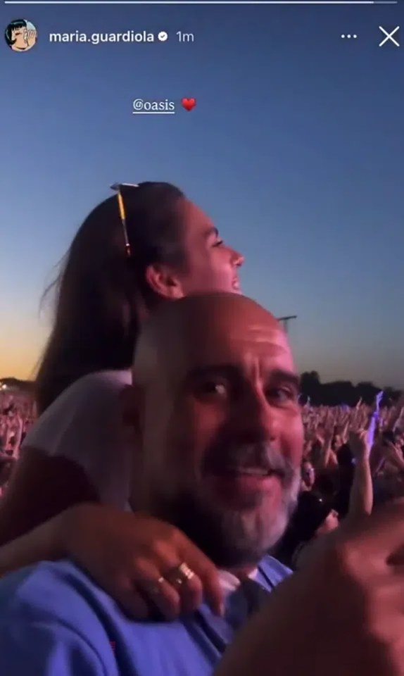 Maria went with dad Pep to one of the concerts in July at Heaton Park in Manchester and were filmed belting out the band's songs.
