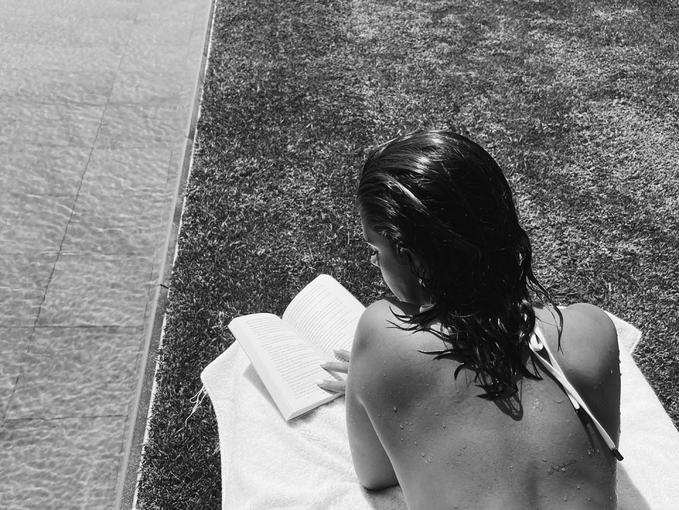Among the photos she shared were one of her wearing a bikini as she soaked up the sun.