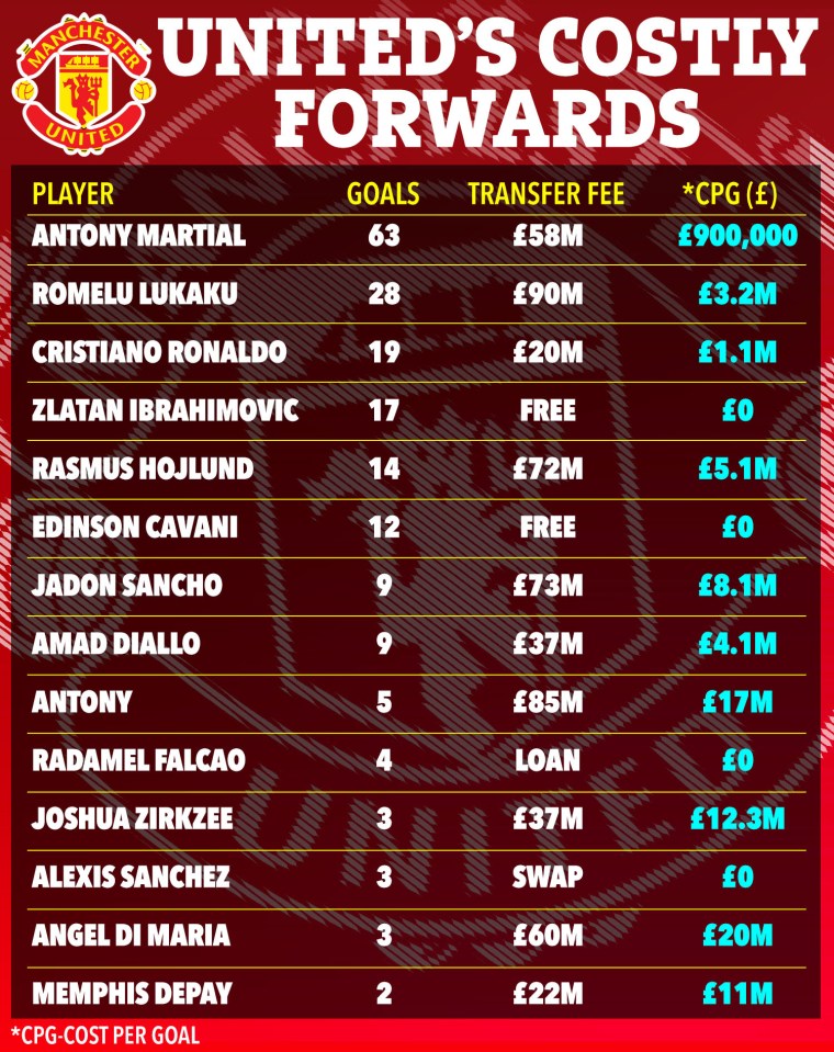 MANCHESTER UNITED's biggest flop forwards have been revealed as the club has forked out MILLIONS for little in return.