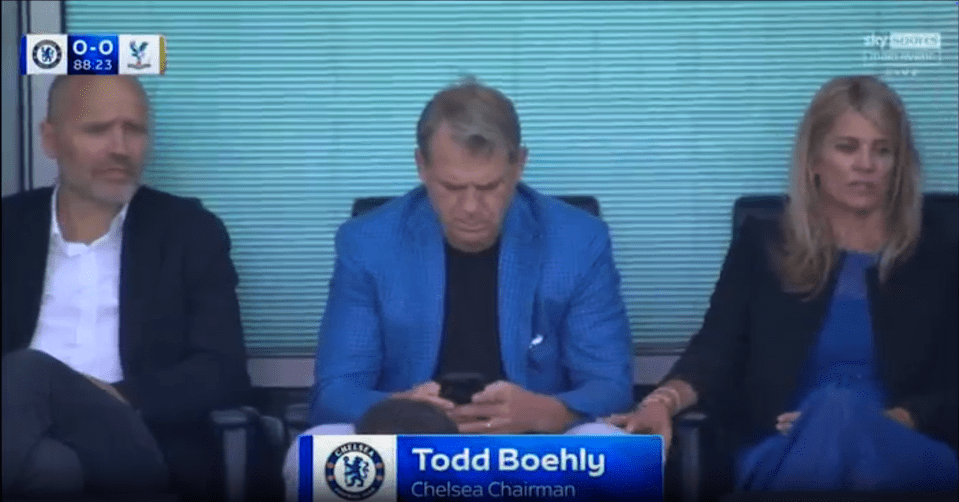 Boehly, 51, was caught scrolling on his phone by the Sky Sports cameras during Chelsea's goalless draw with Crystal Palace on Sunday.