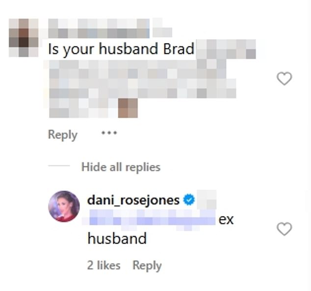 This marks the first time Dani has publicly acknowledged the end of her marriage, which until now has gone unreported.