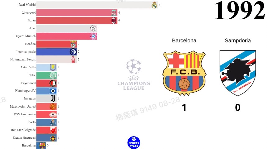欧冠抽签要开始啦,让我们回顾一下欧冠历届冠军变迁