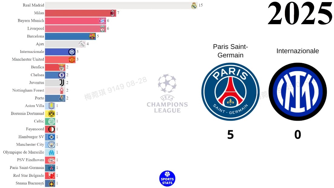 2023 年曼城新科折桂,2025 年巴黎圣日耳曼夺冠。中东石油资本下诞生的新晋“豪门”在欧冠上终有所斩获。