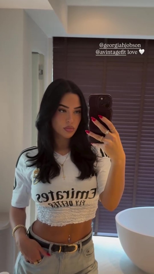Ashlyn chatted to his mum Denise, 56, and dad Mark, 49, in Real Madrid’s Wags and family box during a match against Girona.