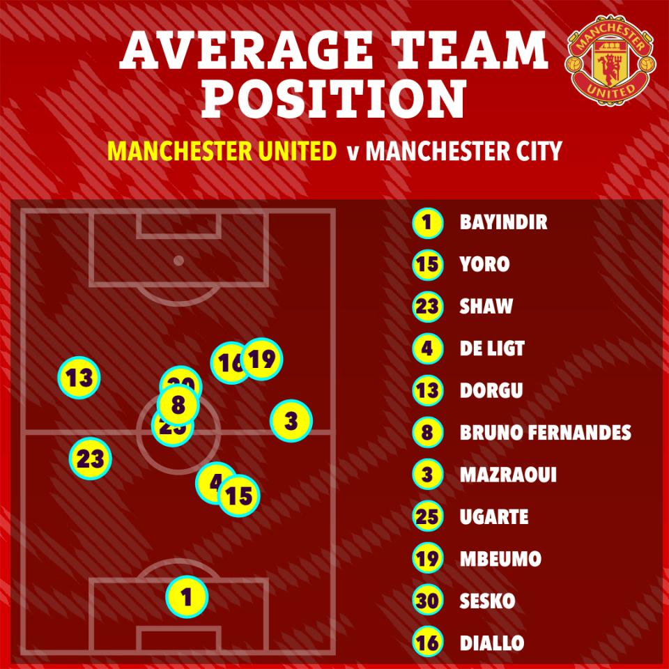 In fact, the Slovenian's average position was more closely aligned to central midfielders Bruno Fernandes and Ugarte, while right wing-back Noussair Mazraoui was also only just behind the same line.