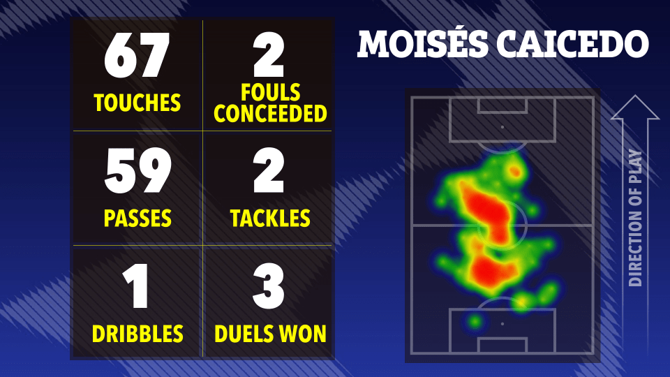 A sloppy challenge from the usually dependable Caicedo saw Harry Kane stretched out on the floor and asking for a penalty, to which the referee said no, before a change of heart and gave the spot-kick.