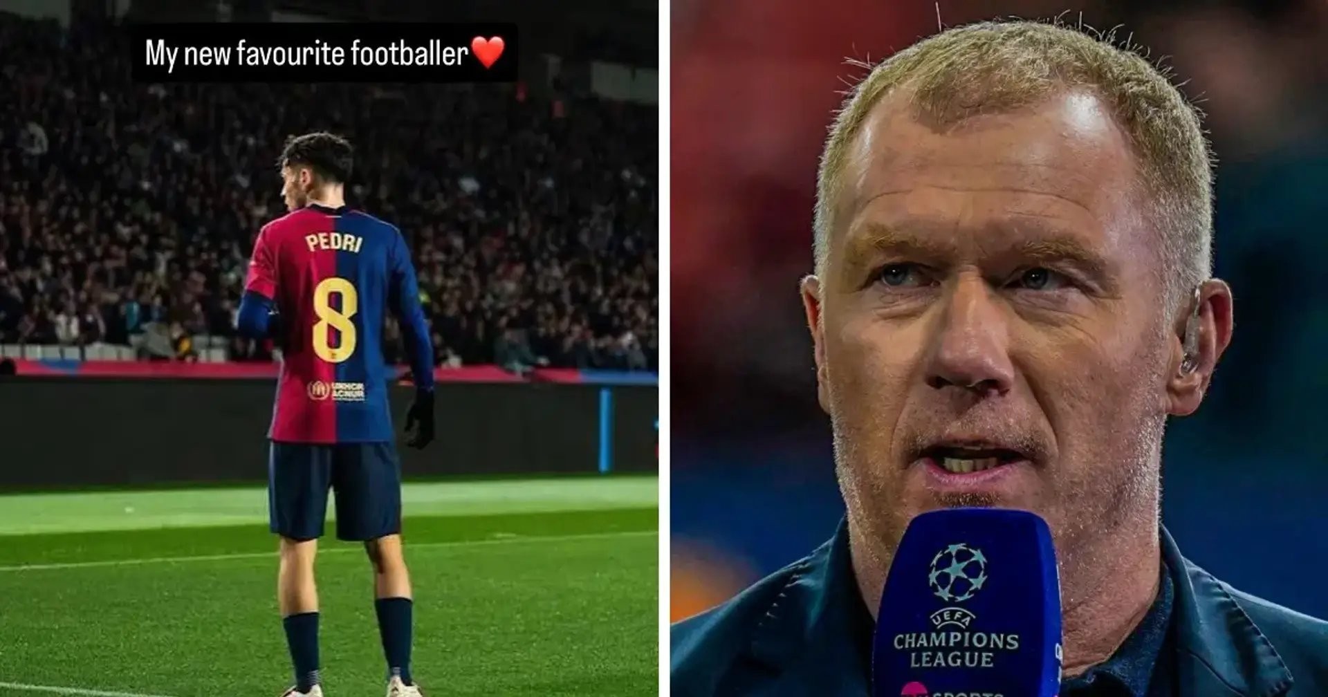 Manchester United legend Paul Scholes praises Pedri's performance.