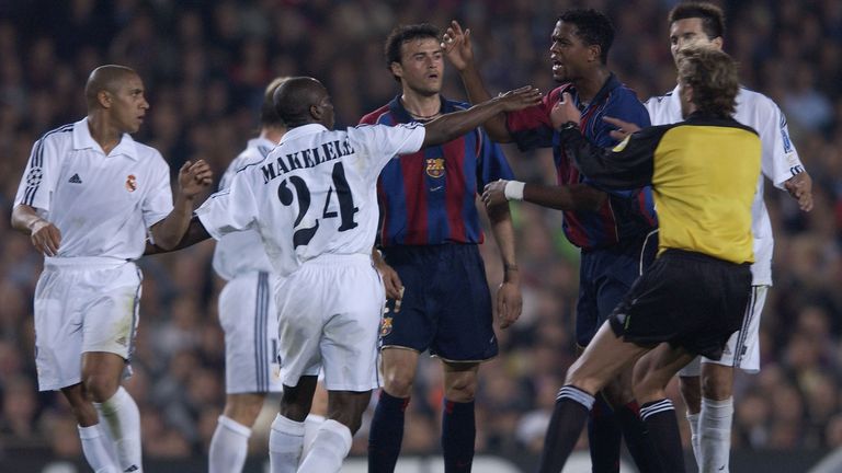 Claude Makelele is speaking to a group of journalists from around the world before the biggest domestic fixture in club football, El Clasico. He is playing a little game. Makelele has to stop them when they name a better player in his specific position.