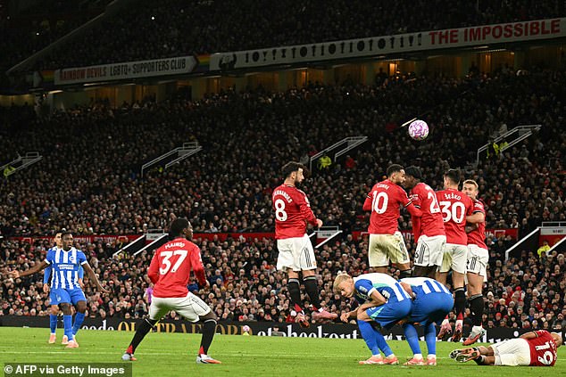 When Welbeck failed to control Diallo’s stray square pass across the edge of the Brighton box, Fernandes knocked the ball to Casemiro who teed up Cunha. The Brazilian took one touch before whipping a shot around Jan Paul van Hecke and into the bottom corner for his first goal since joining United from Wolves in a £62.5million deal.